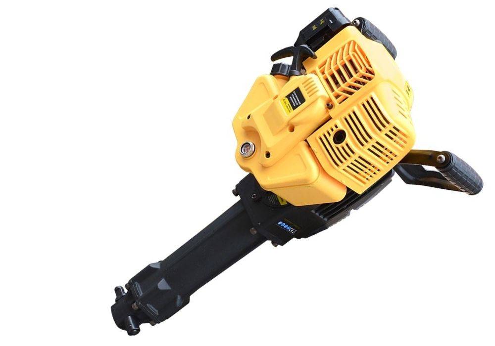 Бензиновый отбойный молоток имеет двигатель внутреннего сгорания, который через шатунный механизм с поршнем передает импульс на боёк. Более мощный отбойник имеет движок большего объёма и большой топливный бак. Из-за этого у молотка размеры и вес больше. Использовать бензиновый молоток рекомендуется на свежем воздухе.