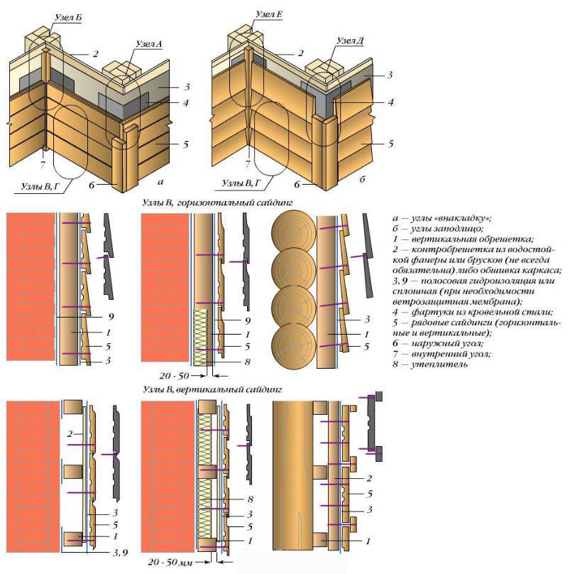 . В некоторых случаях нет нужды в вентиляционном зазоре или в утепляющем материале. При этом, если отсутствует вентиляционный зазор, значит утеплитель непроницаем для пара (пенопласт или ЭППС). Отсутствие утеплителя, чаще всего, требует наличия вентиляционного зазора для организации вывода пара из-под обшивки.