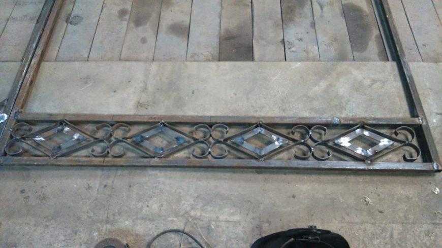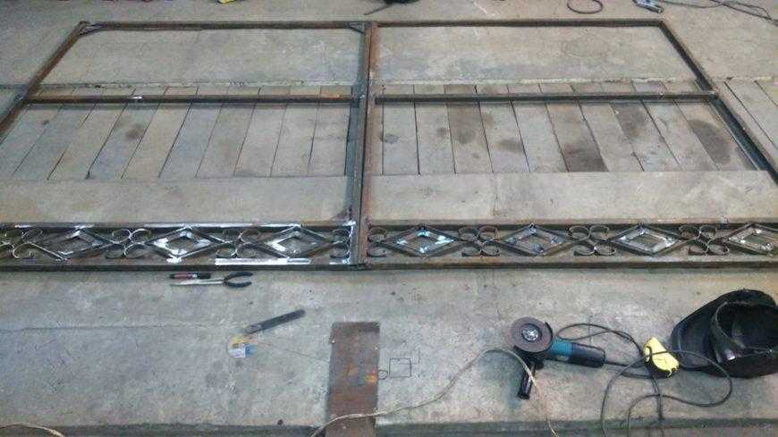 2. Чтобы изготовить ворота с элементами ковки, можно купить готовые съемные рамки и прикрутить их к листу шурупами. Внешне будет казаться, что рисунок нанесен прямо на металл.