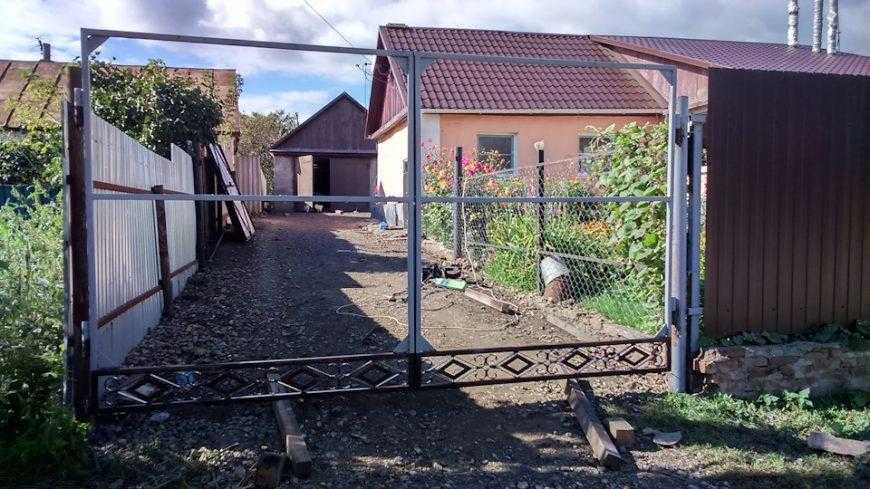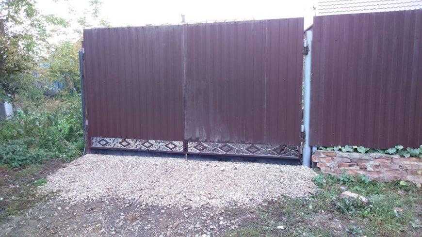 Стандартная ширина калитки составляет 70-80 см, а створки ворот – 1,5-2 м. Высота их может отличаться от высоты ограды или быть равной ей. Для изготовления ворот и калитки из профлиста заранее сваривают каркас в виде прямоугольника с дополнительными ребрами жесткости и укосинами.