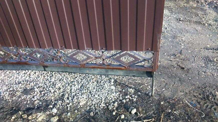 Но при необходимости можно заказать профлист другого размера или с фигурным профилем. Кованые секции монтируют до установки, поэтому длину прогона нужно выбрать с учетом свободных отрезков для крепления к опорам. Для прогонов или рамы рекомендуется выбирать профтрубу 40х20 мм. Столбы для забора из профнастила следует сделать из металлической трубы сечением не меньше 7-10 см.