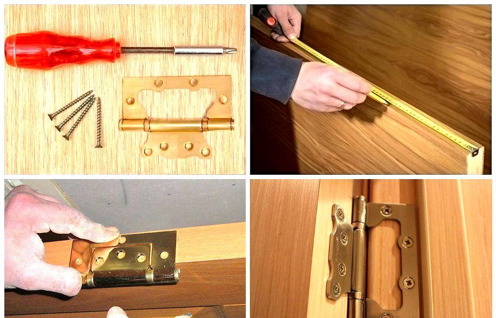 Когда вы установили петли в дверное полотно, его укладывают в дверную коробку и выставляют необходимые зазоры.