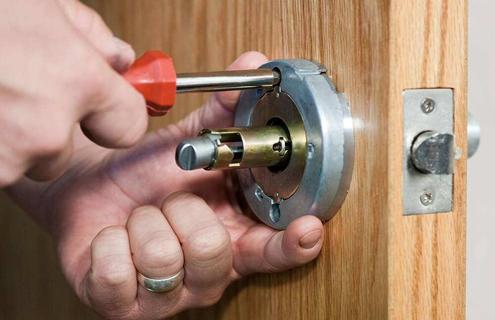В конце вам предстоит установить металлическую пластину на торец дверной коробки. Прорежьте выборки для пластины. Убедитесь, что рамка плотно прилегает к торцу и закрепите рамку шурупами.
