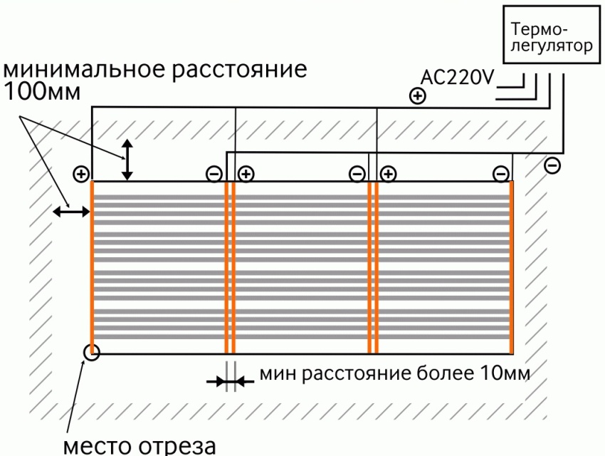 Параллельное подключение всех элементов системы обеспечивает ее надежность – при поломке какого-либо элемента общая функциональность ИК пленки не пострадает.