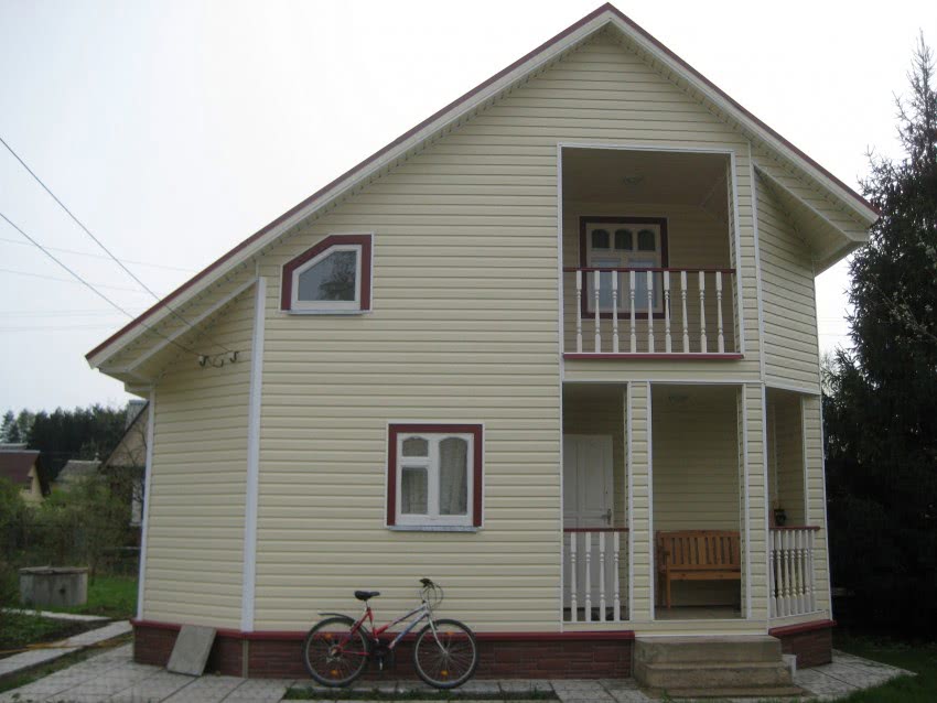 Первый вариант – самый простой: отделка в одном цвете, с подбором оттенка под облицовку фундамента и кровли. Если встает вопрос, каким сайдингом лучше обшить деревянный дом, то хорошим вариантом станет выбор металлической обшивки. Однако в этом случае следует помнить про обязательную гидроизоляцию стен.