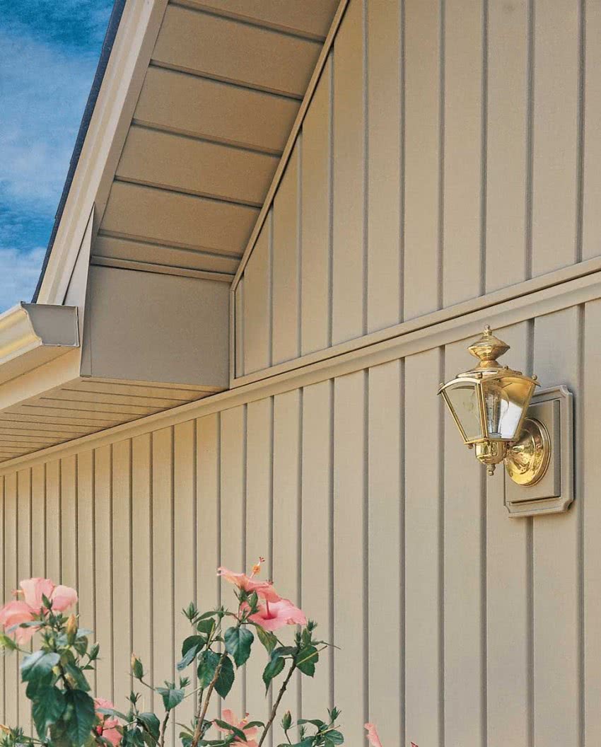 - многие отдают предпочтение виниловым панелям бежевых, песочных и оттенков охра, поскольку они отлично смотрятся на участке. Природный цвет материала идеально подходит для стиля эко, а также гармоничного классического оформления фасада;