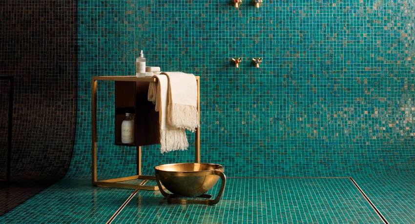 - Влагостойкость. Стеклянная мозаика часто укладывается в бассейне, ванной комнате, турецкой сауне, поэтому это важный параметр.