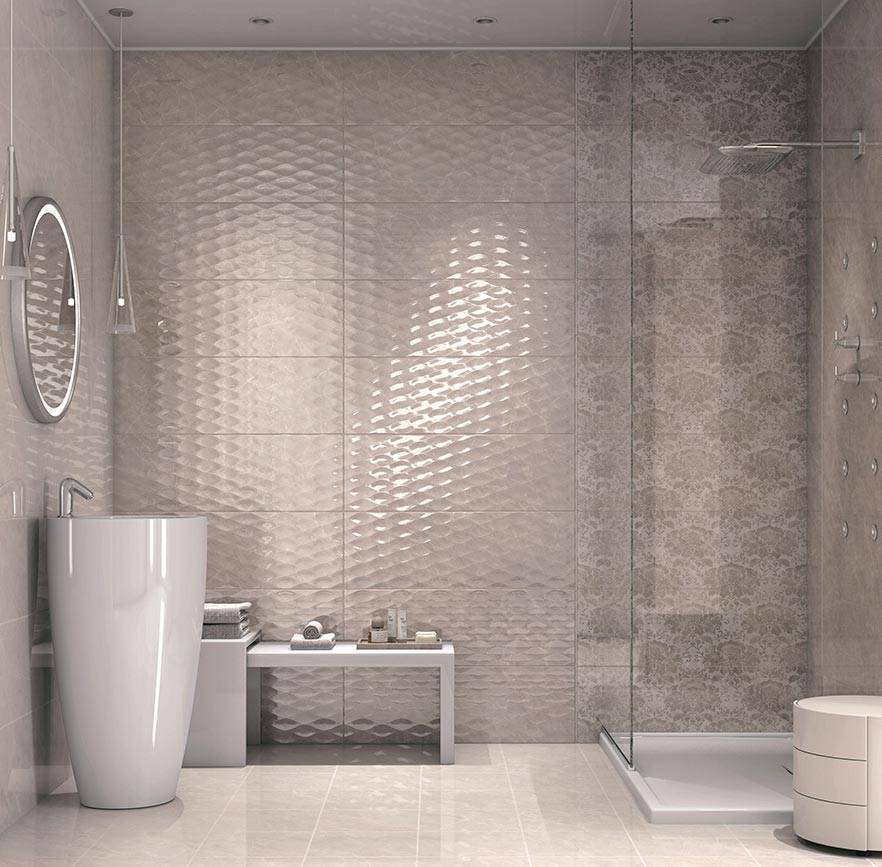 В каждой коллекции есть плитка с орнаментом и рисунками. Например, используя для пола плитку-многогранник серого, белого и черного цветов, вы можете создать оригинальные орнаменты – кругами, волнами и другое.