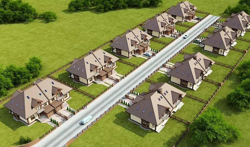 - ИЖС или частные дома. Отличаются большей площадью и габаритными домами, коттеджами. Расстояние между домами при этом превышает аналогичные типы жилья.