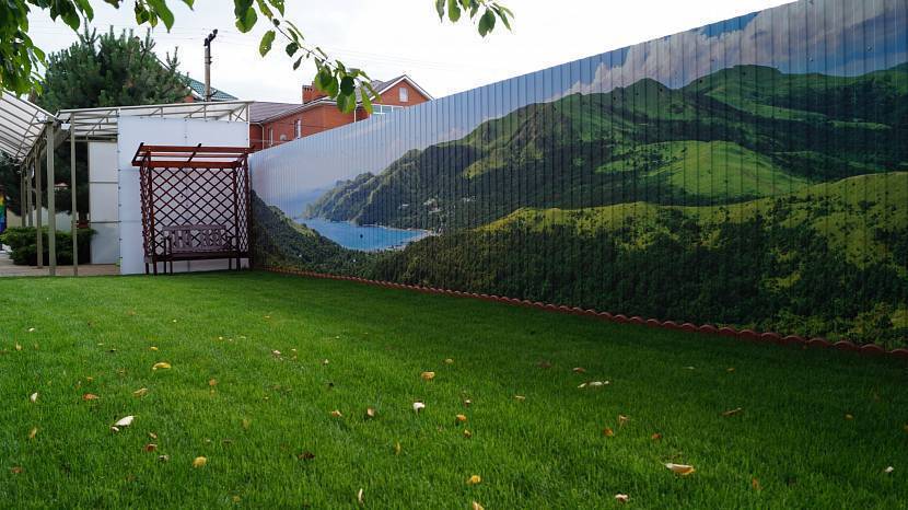 Секции можно декорировать фотопечатью на полимерной сетке или баннерной ткани. Это самый быстрый и недорогой способ украсить забор или замаскировать дефекты поверхности (сколы, ржавчину, царапины).