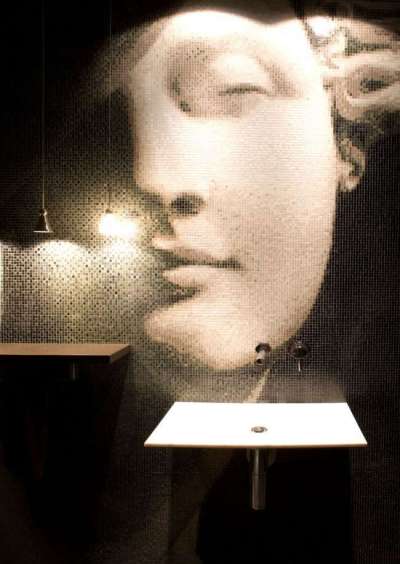 Узоры и орнаменты, художественные сюжеты – возможности мозаичной отделки позволяют выложить на стене даже копию известной картины, собственный портрет. Графические и многоцветные мотивы можно приобрести в виде комплекта готовых блоков, которые согласно схеме несложно разместить на стене. Немного времени, терпение и аккуратность – и картина Микеланджело оживет в вашей ванной.