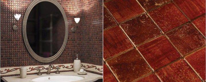 В маленькой ванной, для которой сложно придумать эффектное оформление, с помощью мозаики можно создать цветовые акценты, а правильно подобранное цветовое сочетание, использование небольших декоративных элементов помогут визуально изменить параметры комнаты. Редко, но иногда мозаику используют для пола, тогда интерьер ванной можно будет считать завершенным.