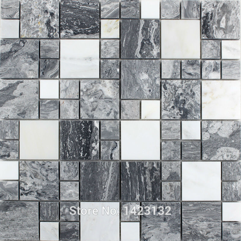 Серый мрамор имеет более светлый оттенок, часто с белыми прожилками. Такой вариант сморится нейтрально, подходит для современных минималистичных дизайнерских решений и традиционных стилей (например, отлично смотрится в стиле модерн или неоклассика). Сочетать со светло-серым мрамором удачно можно холодные оттенки, хотя ограниченная гамма делает орнамент мозаики менее интересным.