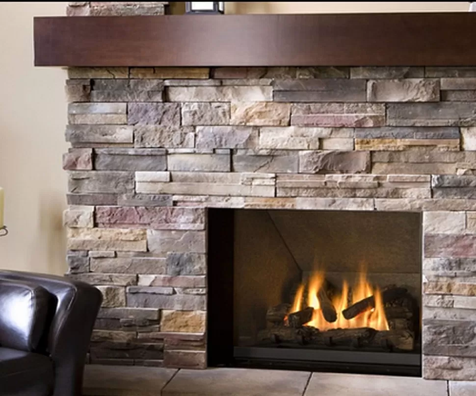 Относительно дешевый аналог натурального материала, изготовленный из гипса и цветного бетона. Облицовка камина искусственным камнем имеет: