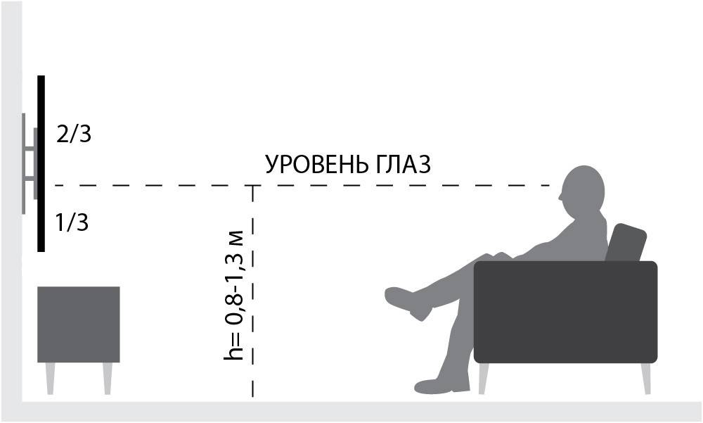 Попробуем подвести итог: на какой высоте вешать телевизор на стену: