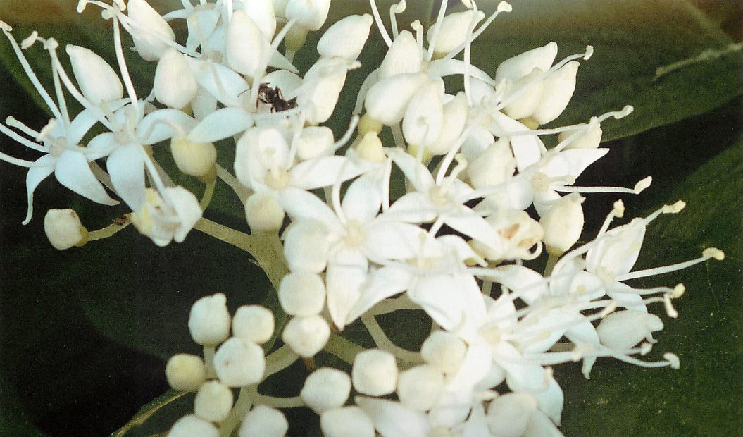 Листья и цветы кустарника женского деренаИсточник rasteniydlysada.ru