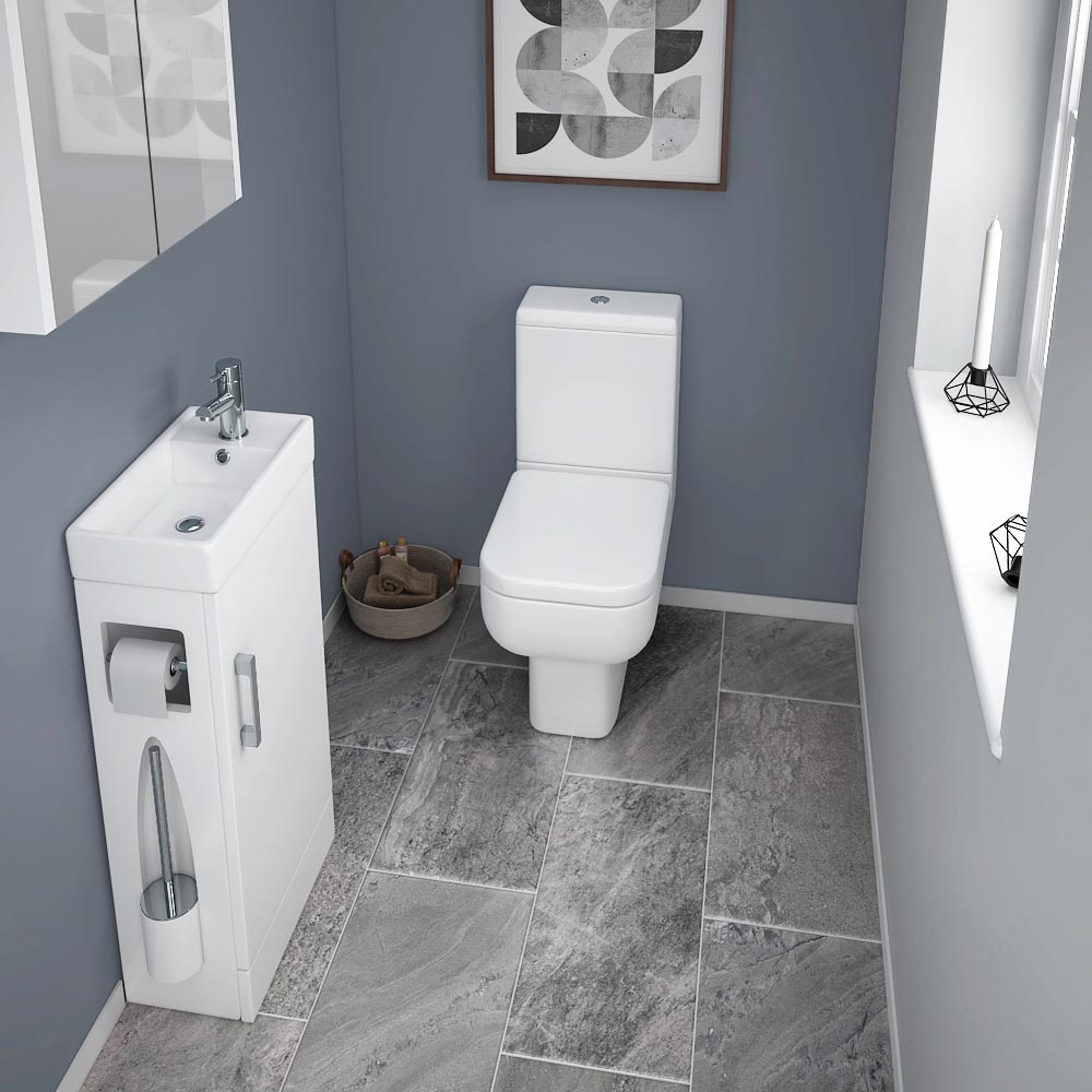 Туалет, отделенный от ванной, как правило, имеет весьма скромные размеры. Здесь помещается только унитаз и остается место для прохода. Если попробовать установить сюда классический умывальник, то из этой затеи ничего не получится – он загородит проход, так что до унитаза придется протискиваться боком. Лучшее решение для таких помещений скромных размеров – это мини-раковина, которая не загромождает пространство, но в то же время эффективно решает вопросы гигиены.