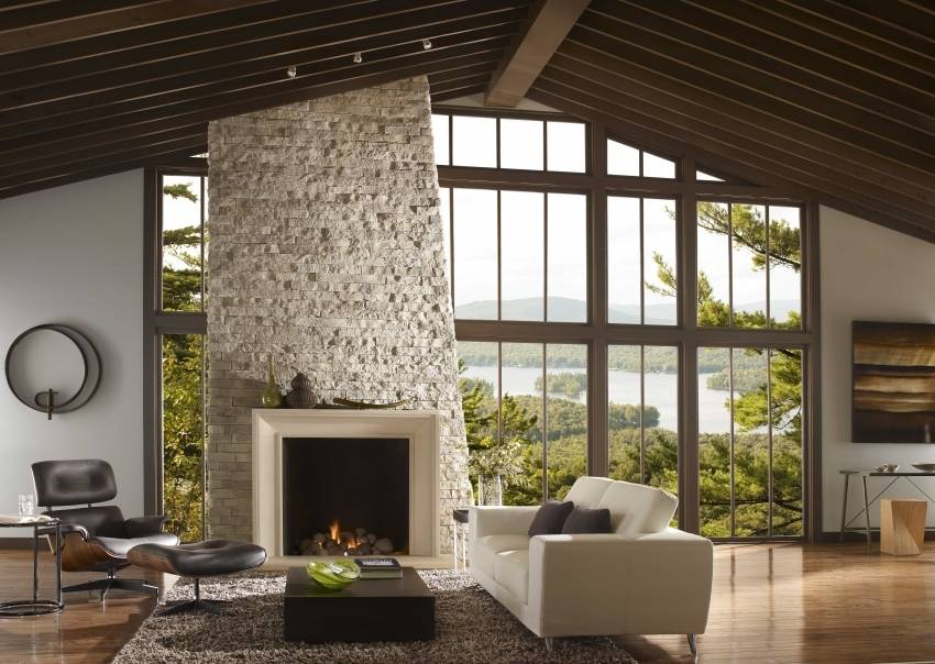 Чтобы сделать очаг акцентной зоной, не обязательно выносить его в центр комнаты. Он вполне может быть установлен в углу или под стеной, утоплен в нишу