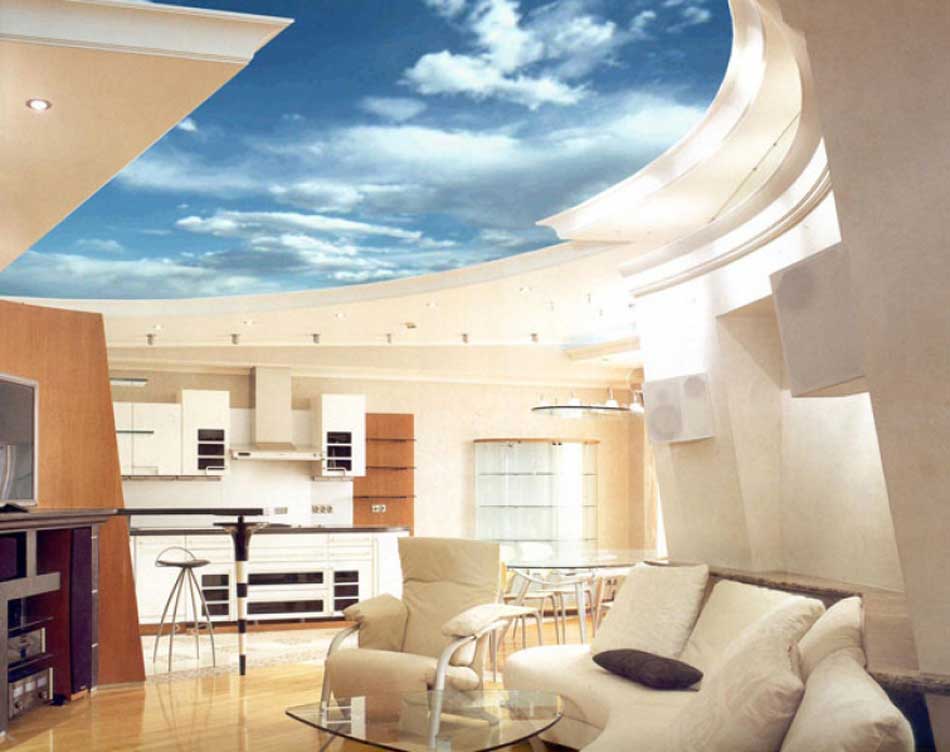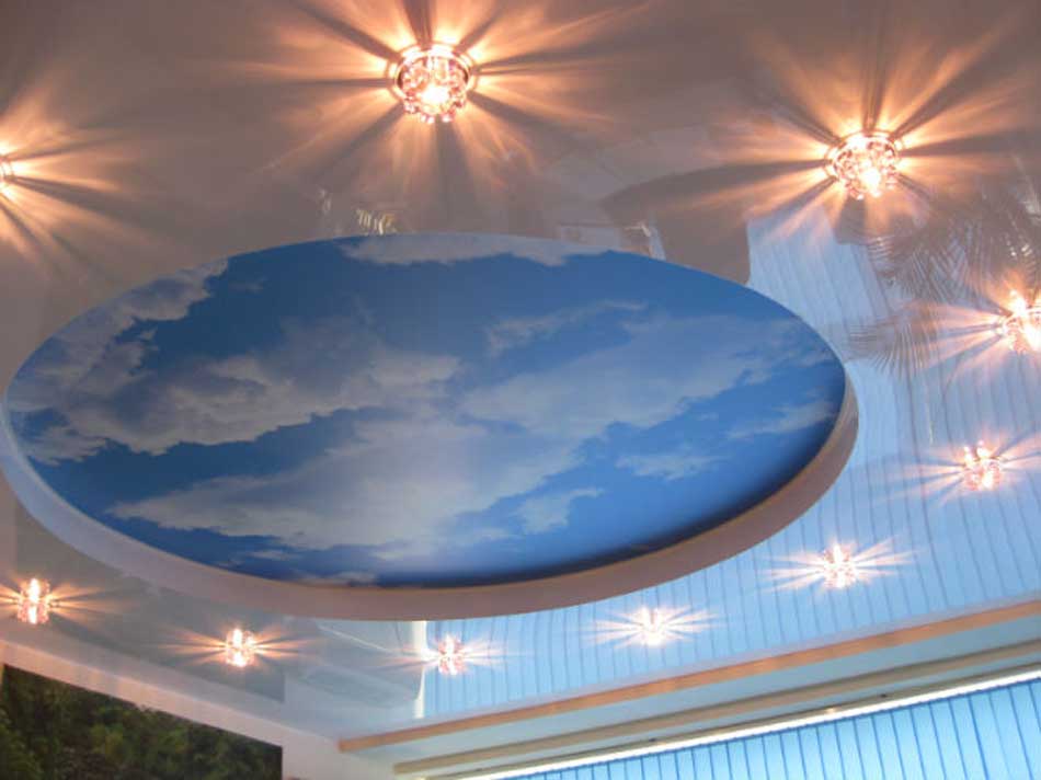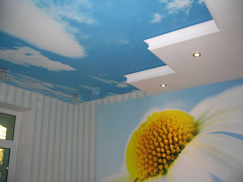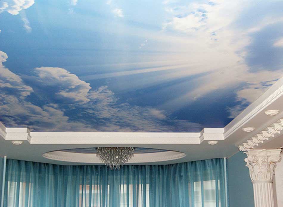 Натяжные потолки «небо с облаками» (см. фото) можно получить несколькими способами: