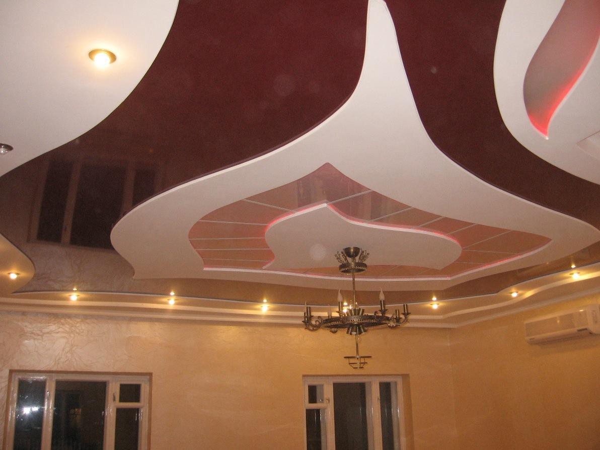 Самыми востребованными в последнее время являются натяжные потолки. Такая популярность объясняется огромным разнообразием фактурных, цветовых и конструкционных решений, а также скоростью монтажа и минимумом строительного мусора. Такие потолки могут быть глянцевыми, матовыми и «тканевыми», однотонными или с каким-либо изображением.
