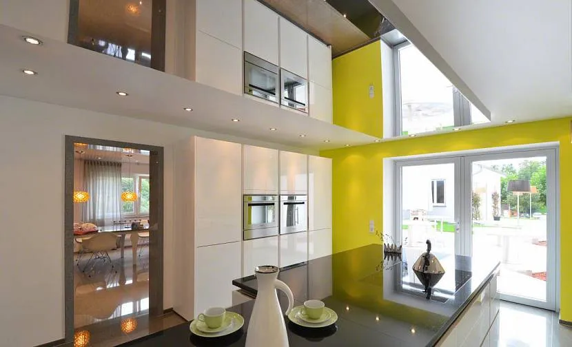 Голубой цвет идеален для квартир, окна которых выходят на солнечную сторону. Это поможет охладить помещение даже в самое знойное лето. Если установить потолок такого цвета на кухне, в ней будет комфортно при любой погоде.