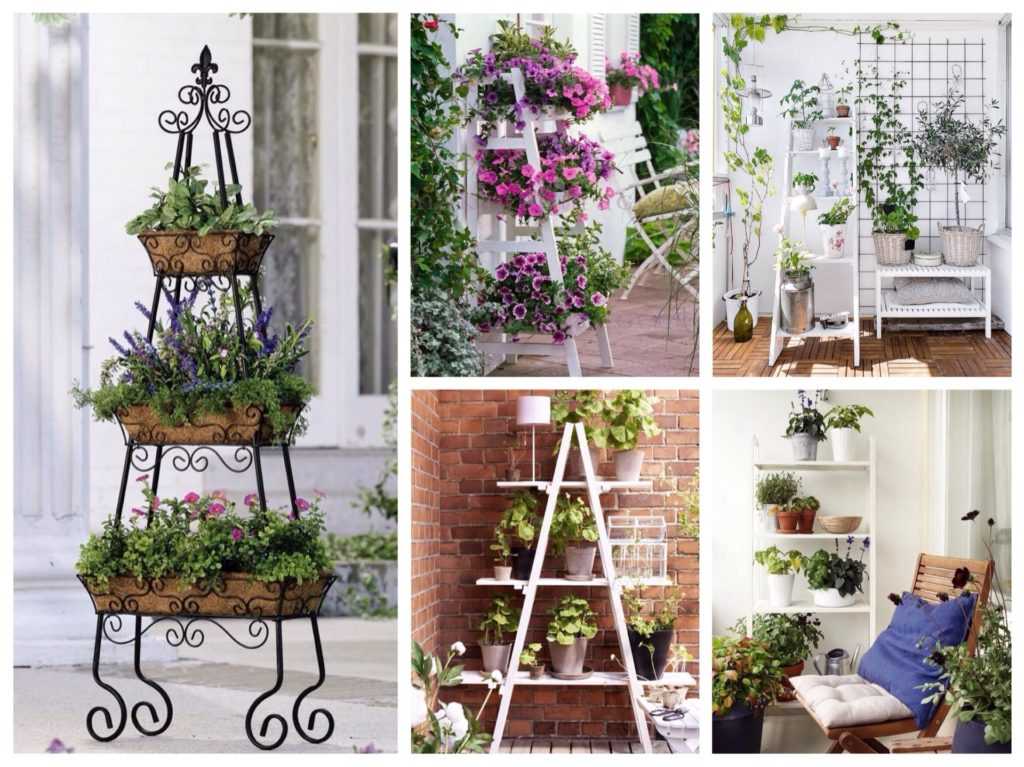 Вертикальное озеленение балкона возможно и с обычными комнатными растениями в горшках, которые располагают ярусами вдоль стены