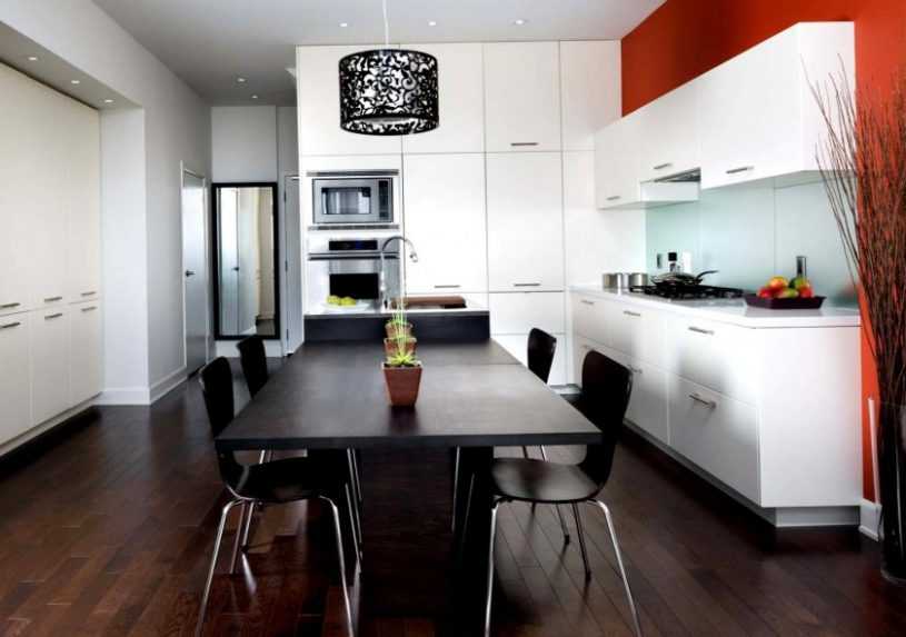 В небольшой кухне следует основным оттенком выбирать белый, чтобы визуально скорректировать маленькие размеры. Для большой комнаты полет фантазии не ограничен, не стоит бояться использовать большой процент черного цвета.