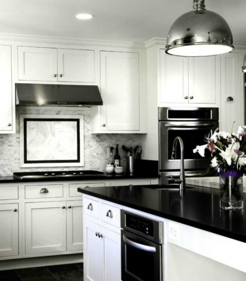 Пример классической кухни в черно-белом варианте.