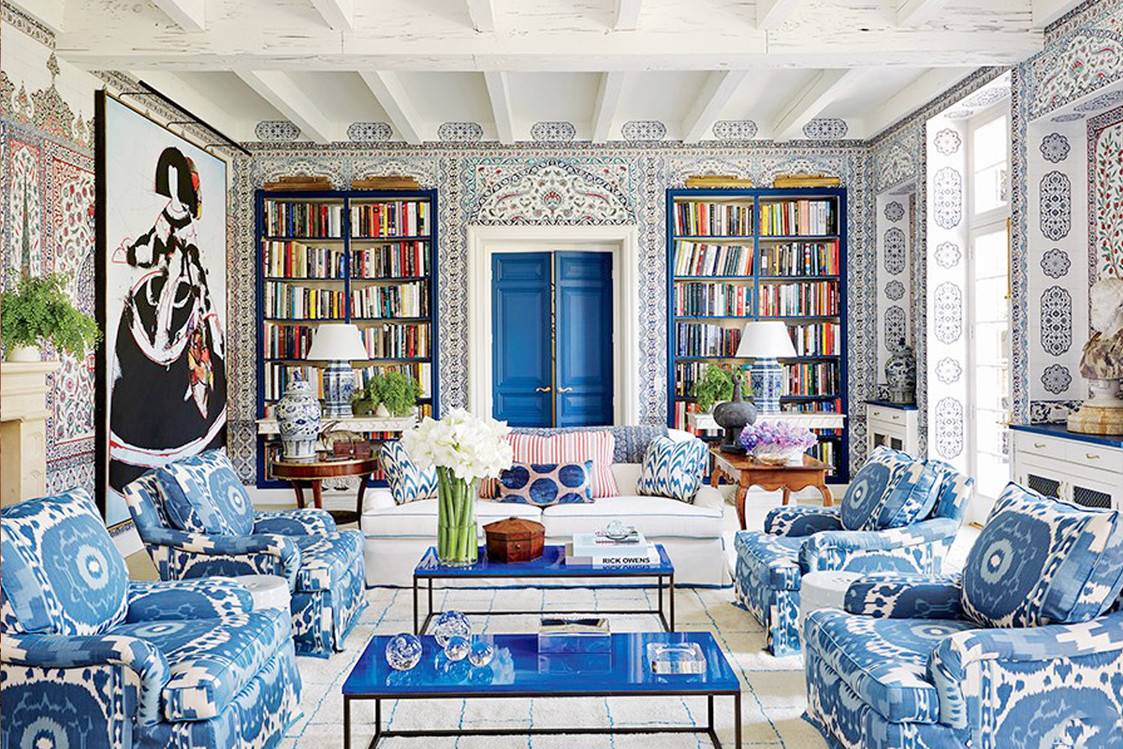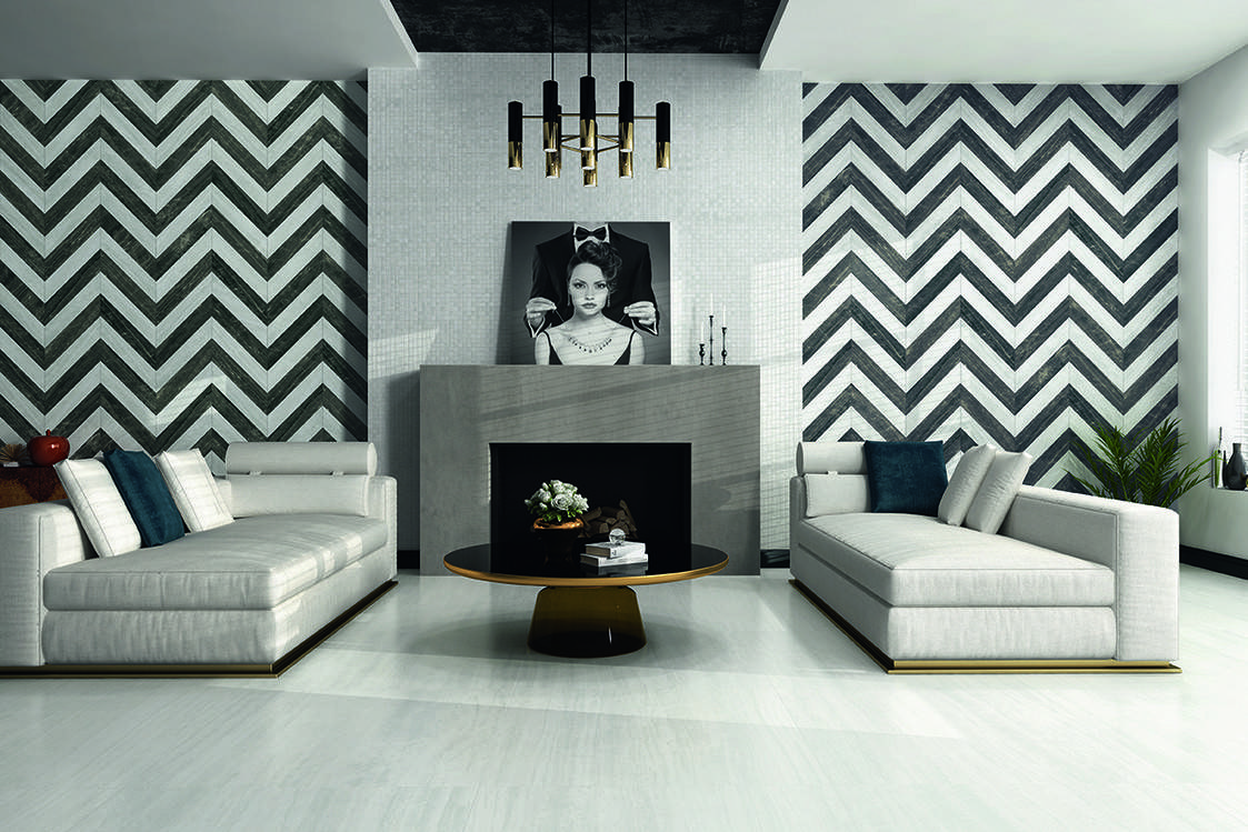 Чтобы сделать интерьер гостиной современным и дорогим, достаточно выбрать обои с модным принтом