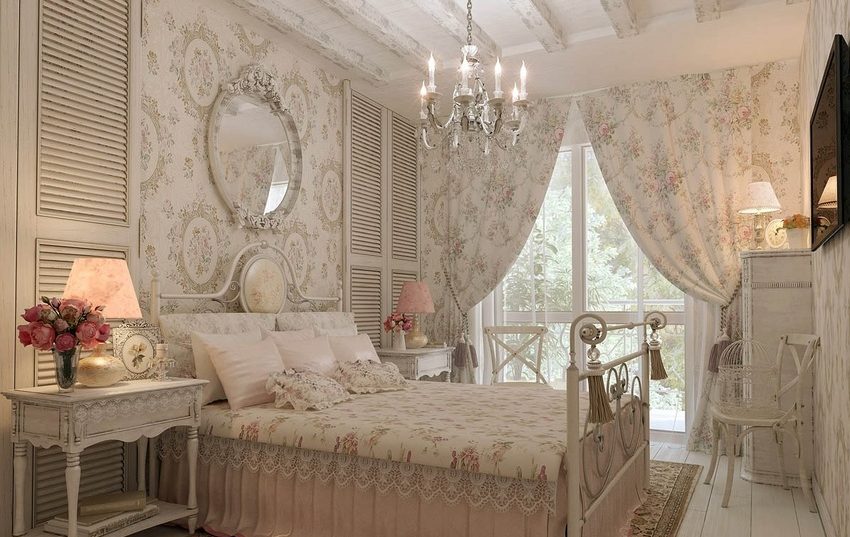 Для маленьких спален лучше всего отдать предпочтение нежным оттенкам обоев, на которых будут изображаться цветочные принты.