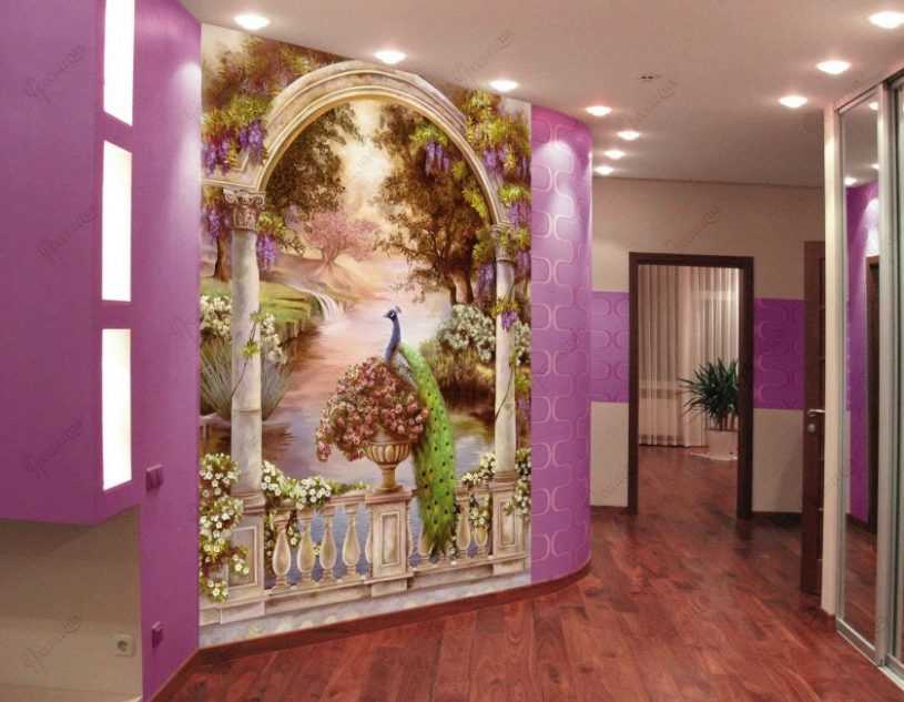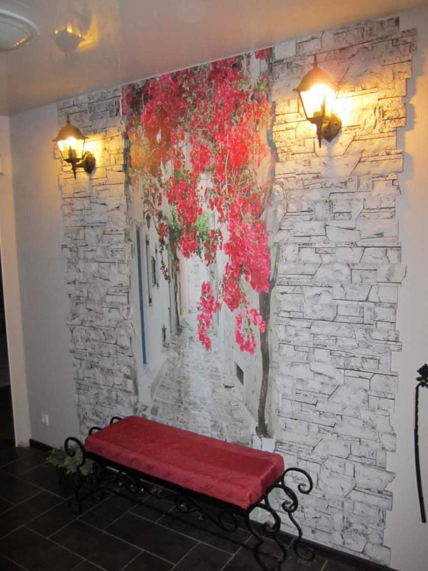 Многим домовладельцам нравится использовать фотообои или декоративные панно для отделки стен своих жилищ, пространство прихожей не является исключением. Ограничение на подобные способы отделки стен накладывают лишь размеры комнат и финансовые возможности жильцов.