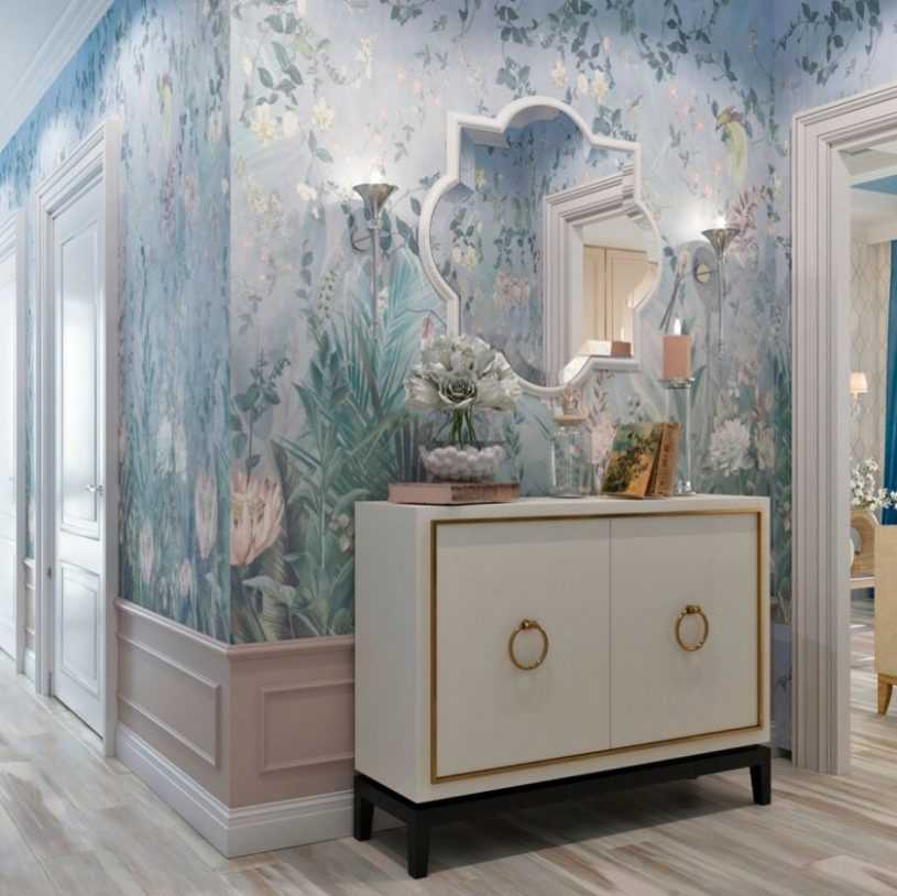 3В вашей прихожей есть арки, ниши, значительные выступы или проемы? Тогда крупных принтов лучше избегать. А вот мелкие принты или однотонные полотнища будут к месту.
