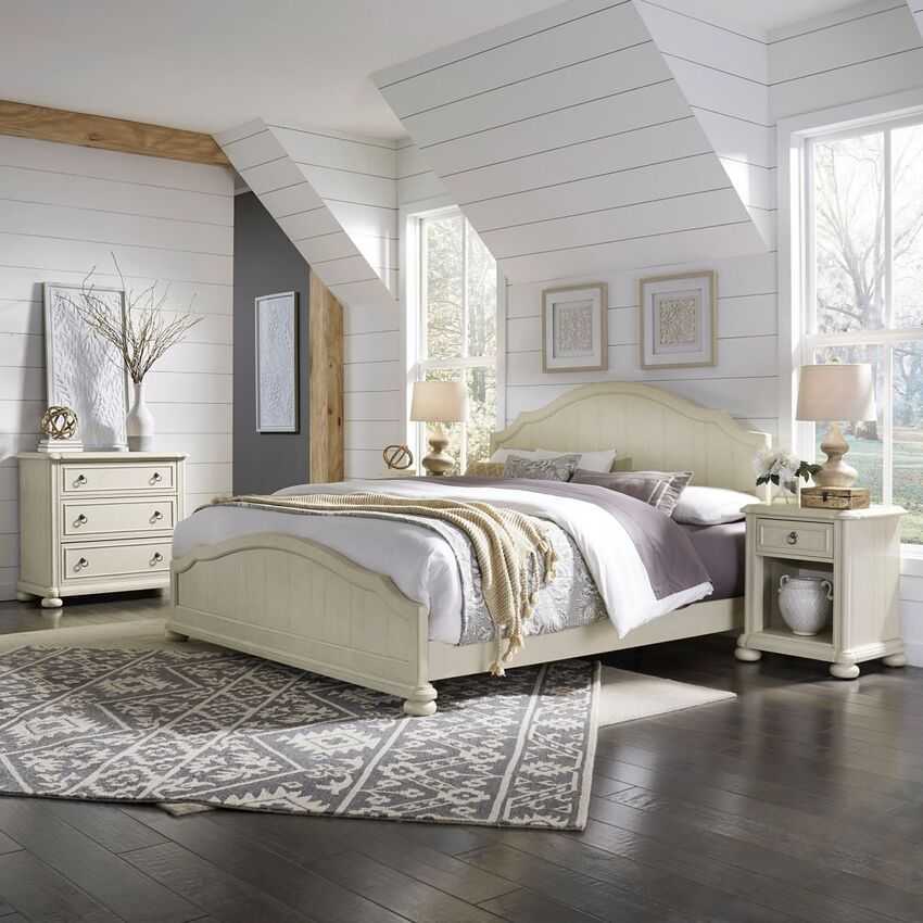 К выбору мебели в стиле прованс для спальни нужно подходить ответственно. Без сомнения, центральным элементом выступает кровать. Преимущественно этот предмет мебели имеет простую форму и резное изголовье, иногда с узором. Материал – дерево, которое уместно дополнить коваными вставками. А главным акцентом мебели должен быть текстиль: вышитые подушки, цветочные принты, массивный балдахин, кружево.