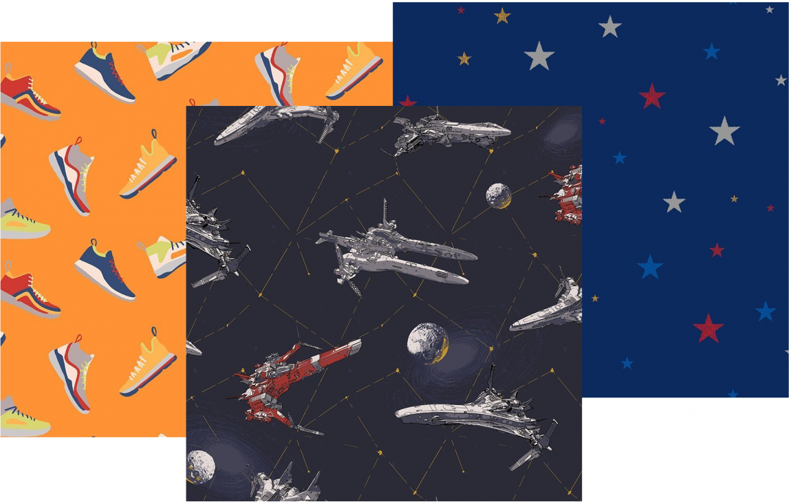 В ассортименте преобладают рисунки на тему флористики, геометрии, а также милые рисунки на детскую тематику.