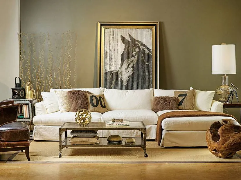 Оливковый в гостиной будет соответствовать классическому направлению или стилю кантри. А плавные линии предметов мебели подчеркнут изящность комнаты.