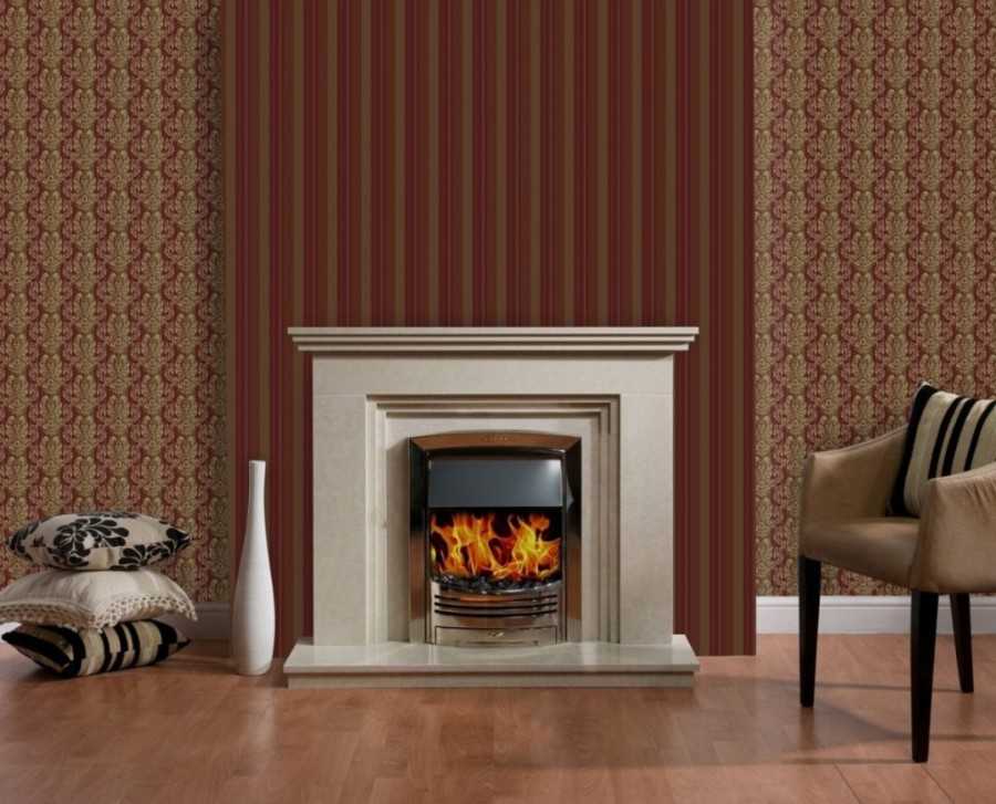 Роскошно и изысканно выглядят обои с едва заметной текстурой вверху и классическим рисунком, украшающим нижнюю часть стены.