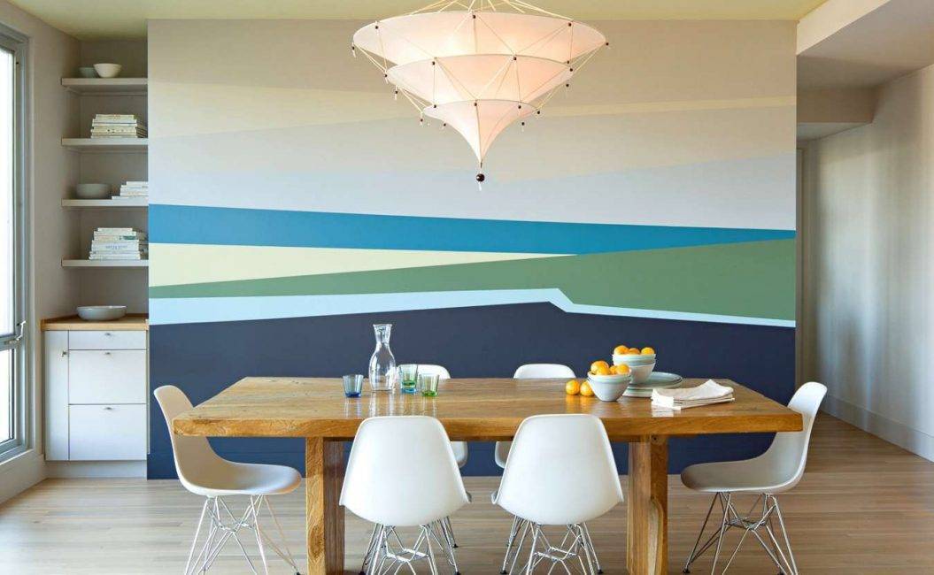 Дизайнеры используют простое разделение зоны на зону для приема пищи и отдыха. Мы будем использовать обои, которые отличаются фактурой и цветовыми акцентами. При оклейке стен разноцветными покрытиями интерьер значительно оживится. Выигрышным вариантом станет использование теплых оттенков в холодной части квартиры. Для обеденной зоны подходят холодные оттенки.