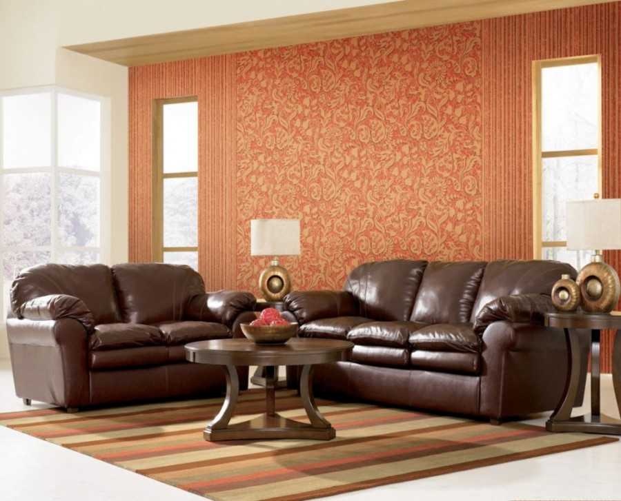 Более спокойный вариант – обои-компаньоны, выкрашенные в теплые оттенки единой цветовой гаммы с декоративной разделительной полосой в тон нижней половине стены.