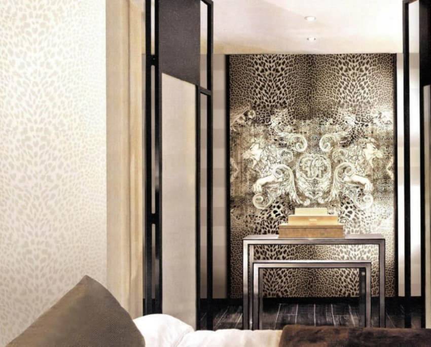 Оформление комнаты в стиле Роберто Кавалли может повлечь изменения дизайна во всем помещении