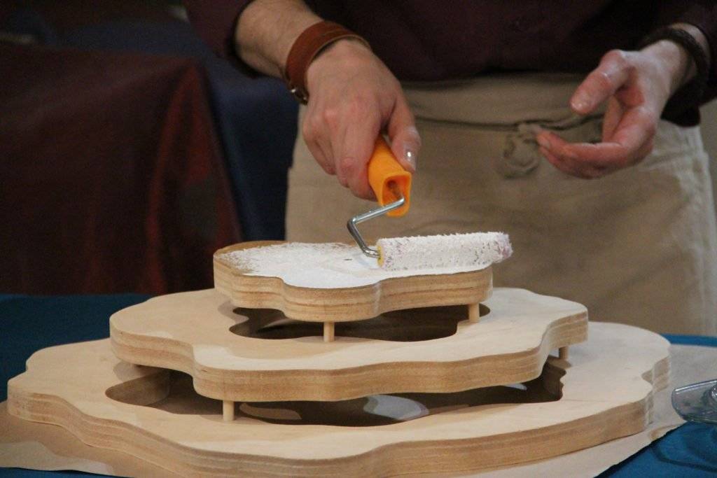 В белую краску добавляю порошок интанако, который придаст часам фактуру. Покрываю изделие полученной смесью.