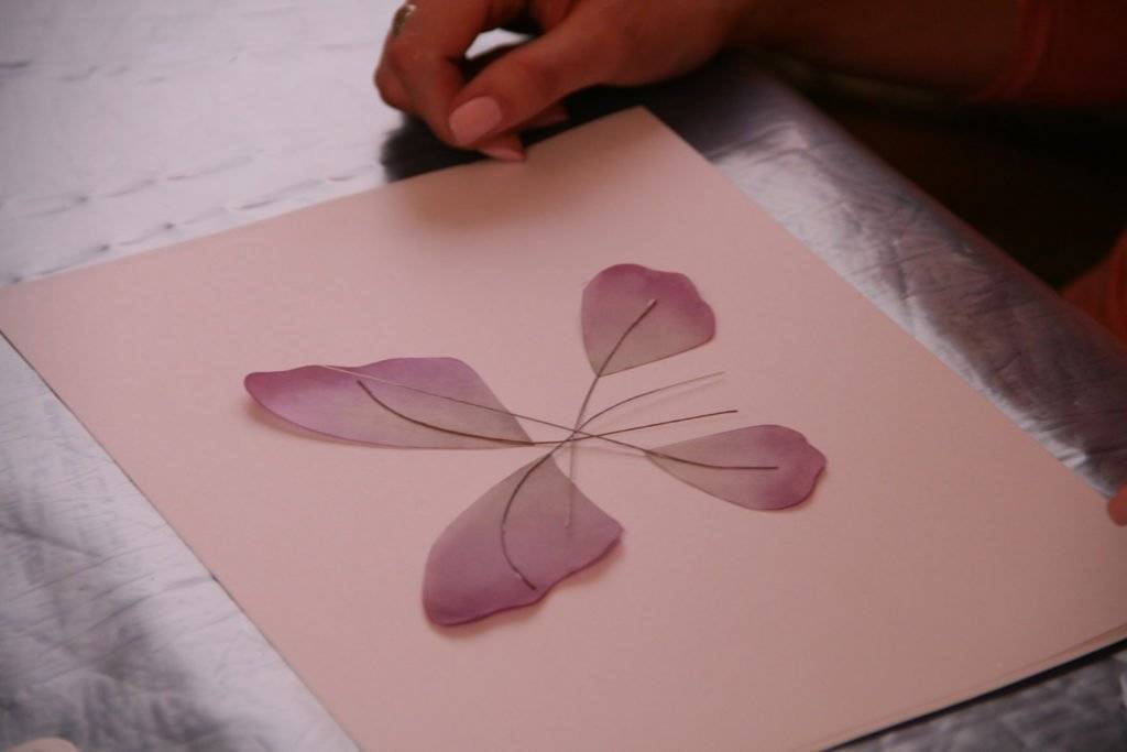 После высыхания крыльев клеем ПВА с изнаночной стороны деталей приклеиваю проволоку, обернутую бумагой.