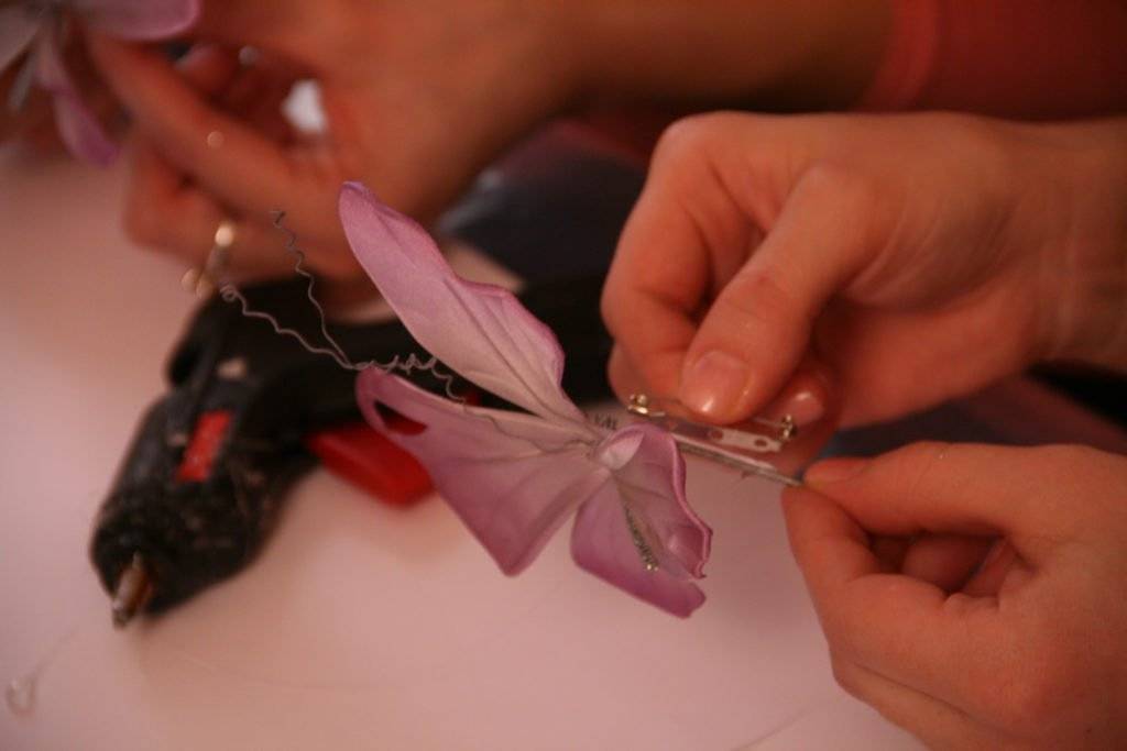 С помощью полимерного клея приклеиваю булавку. Расправляю крылышки и поправляю усики.