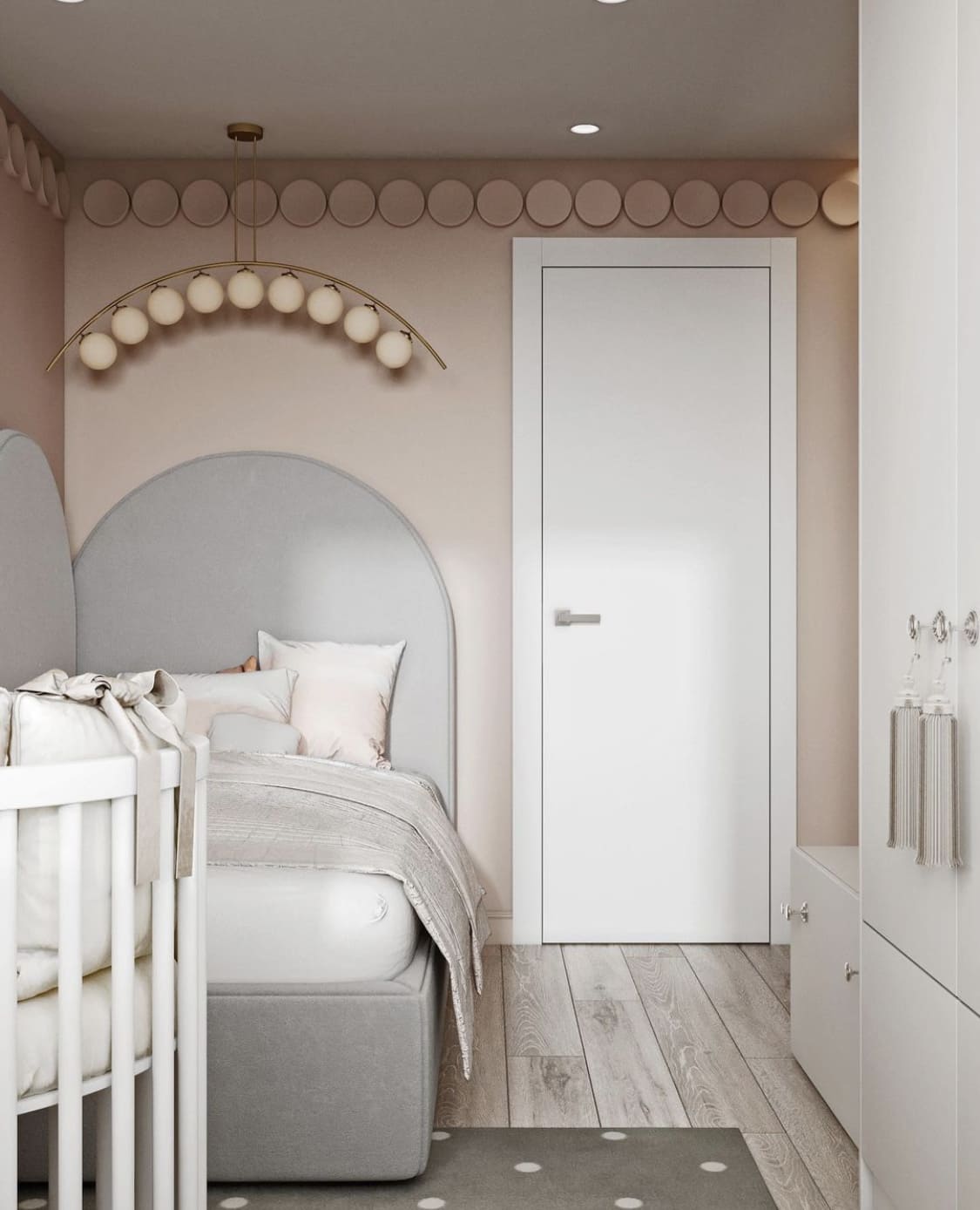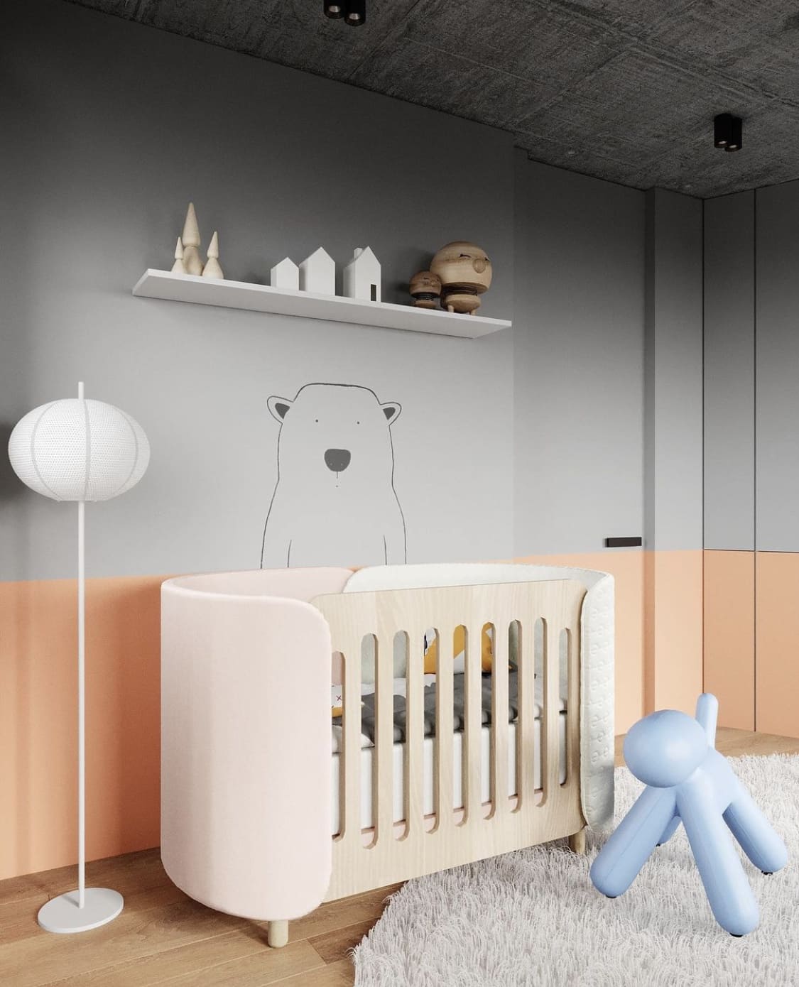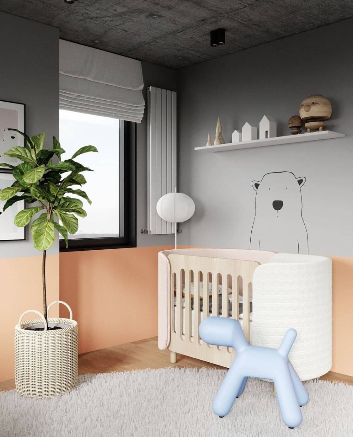 Помимо белого персиковый легко сочетать с серым цветом, дополняющим или выступающим в роли основы интерьера. Такая комбинация смотрится стильно и актуально, а также может оказаться более практичной;
