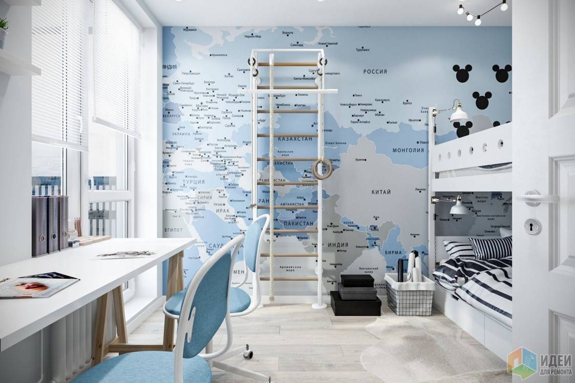 Лучше в этом возрасте разделить обоями комнату на зоны, тогда у ребёнка появится место для игрушек, зона для занятий и спальное место. В таком возрасте в детскую комнату подойдут фотообои, для мальчиков это особенно интересно, они уже могут «проконсультировать» родителей, что сейчас в «тренде».