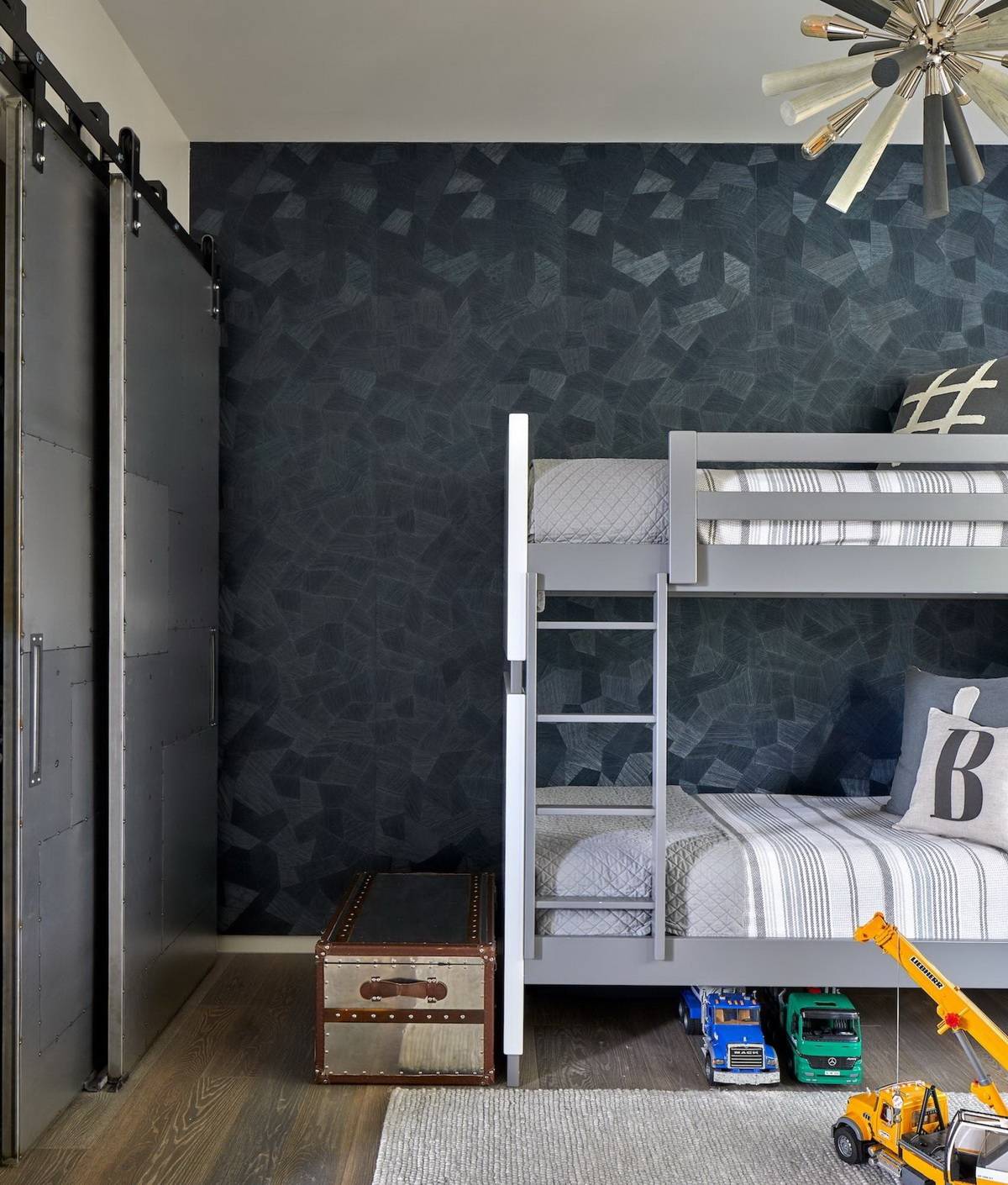 - Подростки часто стесняются мультяшных картинок, поэтому обои в детской, скорее всего, придется заменить, когда ребенку исполнится 11-12 лет. В этом возрасте мальчики предпочитают четкие линии, геометрический узор на покрытиях, стены более глубоких, насыщенных оттенков. Если мальчик очень любит автомобили, не стоит полностью отказываться от этой темы, ведь в продаже есть масса фотообоев с изображением настоящих автомобильных новинок, раритетов или спорткаров. Такими реальными фото можно украсить только одну из стен спальни, большее количество машин в комнате неуместно.