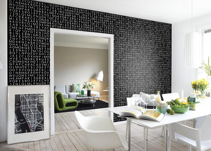 На сегодняшний день обои с принтами в виде букв и слов довольно популярны