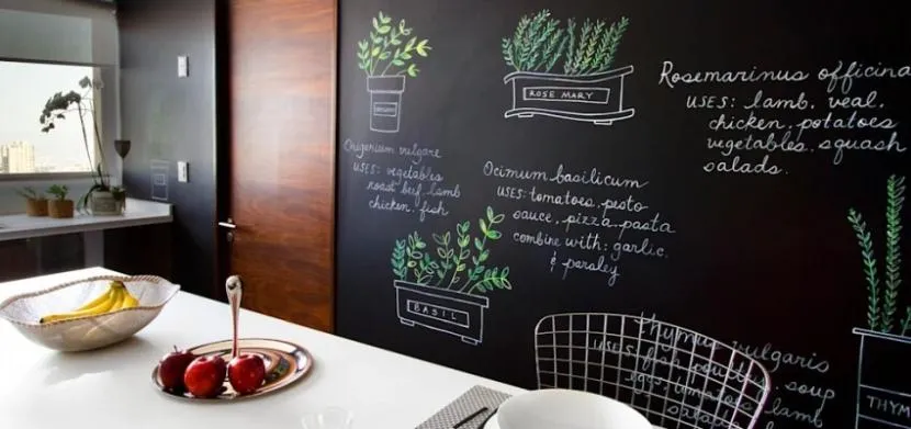 Грифельная (меловая) доска. Также помогает обновлять интерьер так часто, как захочется, а производители предлагают широкий выбор формы, размера и толщины аксессуара. Грифельная доска отлично впишется в детскую комнату или в кухню, где её можно сделать, например, частью фартука.