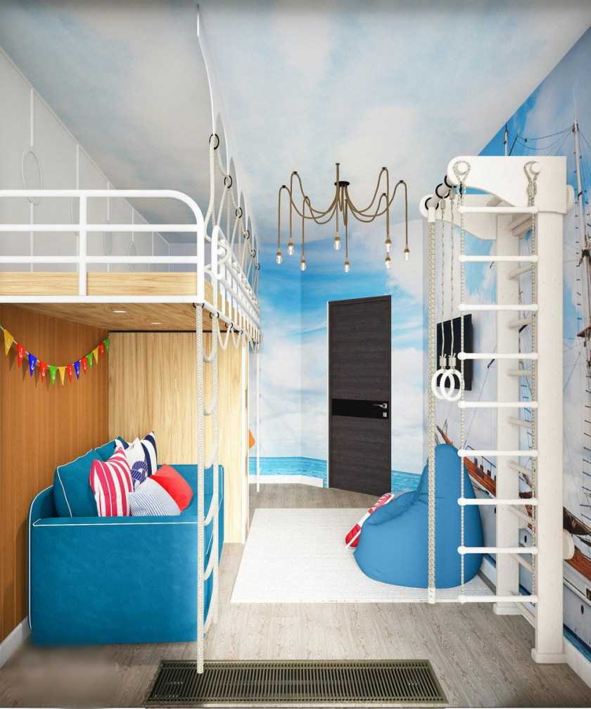 В детской, оформляемой в морском стиле, возможны следующие варианты: