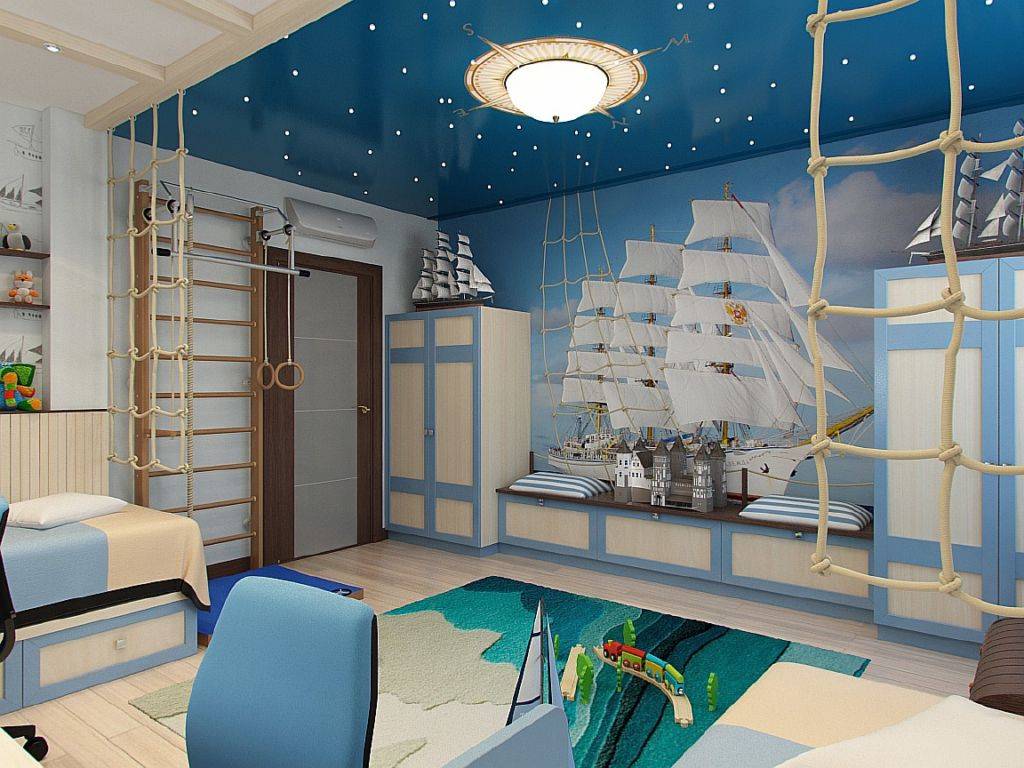 В детской, оформляемой в морском стиле, возможны следующие варианты: