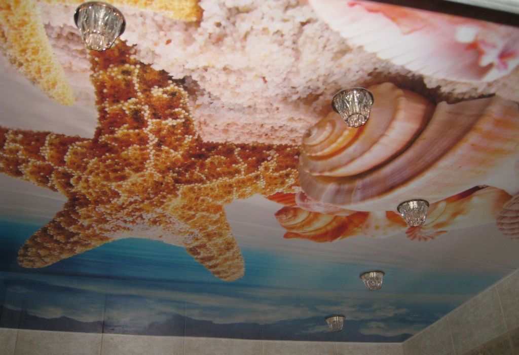 Сегодня все чаще применяют для потолков фотопечать в виде ночного неба. Но можно использовать и фотопечать с облаками и чайками. Это поможет воссоздать свободный дух общего стиля комнаты.